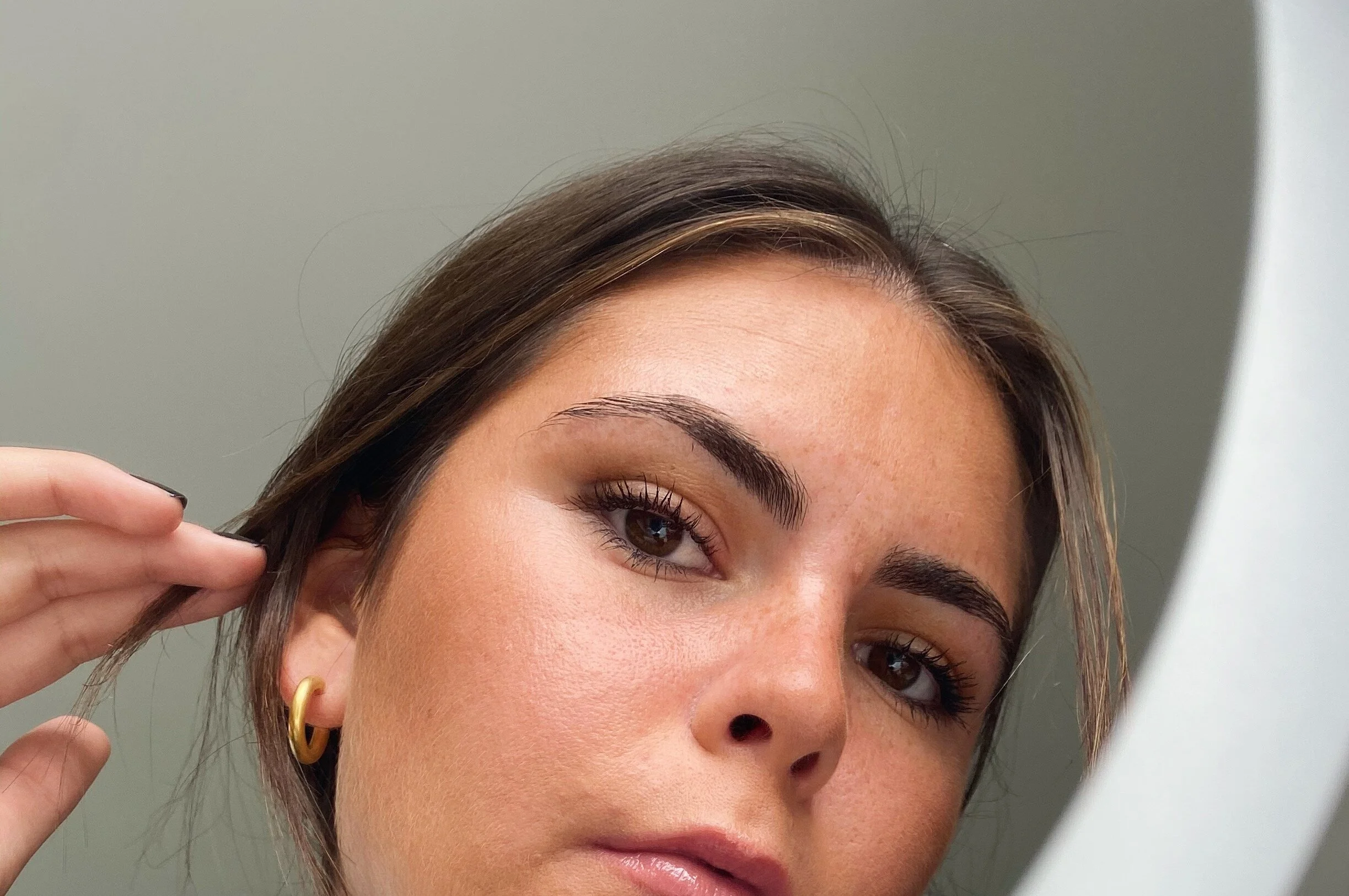 The secret to achieving a glowy summer-skin look in the fall is to actually let your skin shine through. So, when wanting to look fresh and dewy, I skip foundation. If you’re not comfortable with that, you could start with a light tinted moisturizer. I think one of the hallmarks of summer skin is the simplicity, so I try to use as few products as possible. After my skincare routine, I go straight in with concealer. I put it mainly on the bottom half of my face, covering my acne and spots, and then just a little dab wherever else I need it. I try to avoid my nose and cheeks so that I can let my few leftover summer freckles shine through.