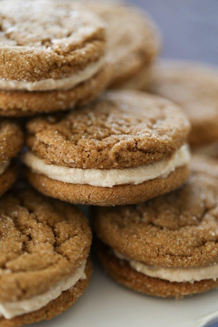 For the cinnamon buttercream: mix butter, sugar, vanilla cream and cinnamon together until a thick and smooth frosting forms. Spread 1/2 to 1 tablespoon of buttercream onto one cookie. Top with another cookie and place onto serving platter. Repeat with remaining cookies.