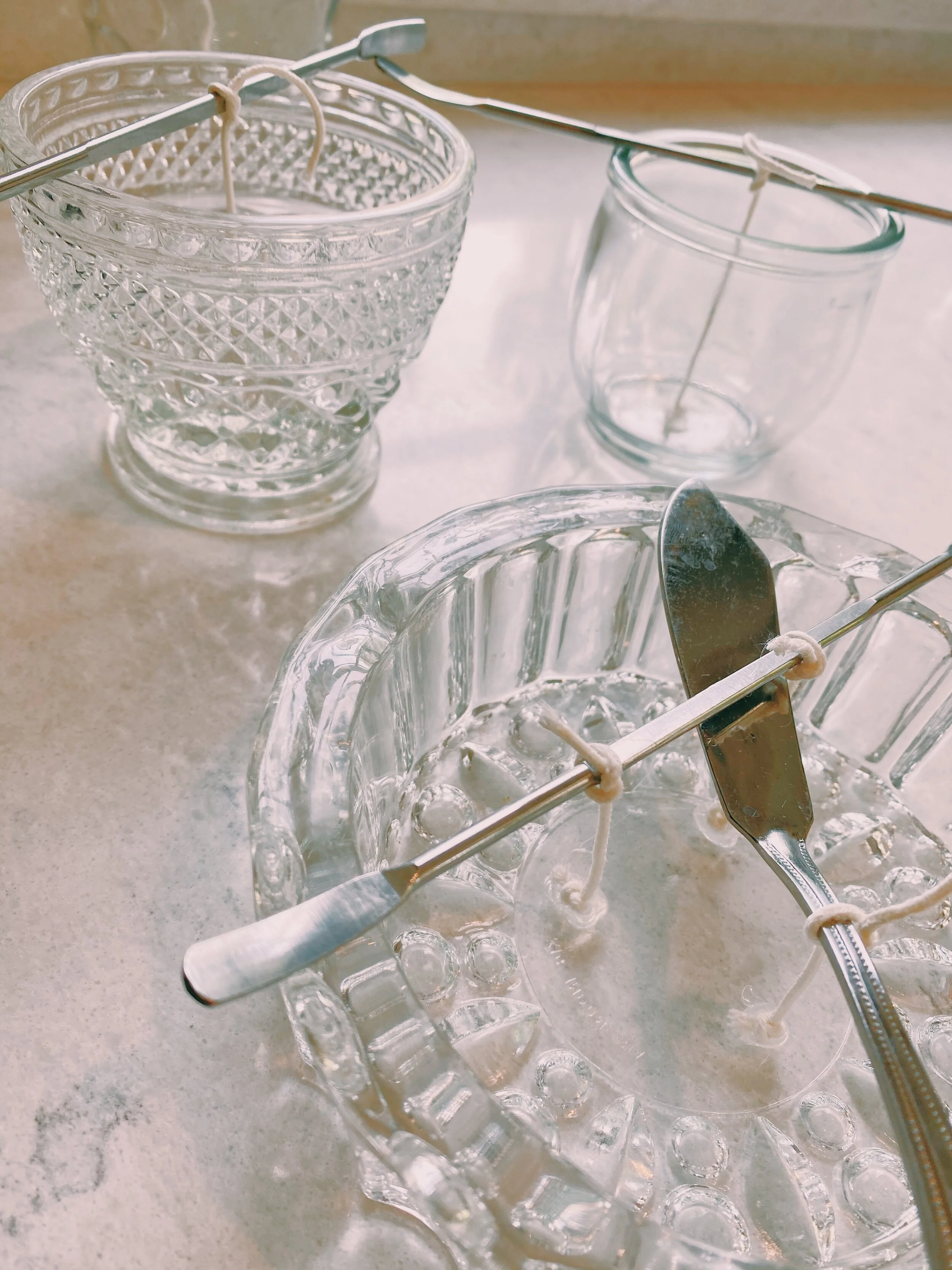 If you have any old glassware laying around that is no longer being used, this is the perfect DIY project for you. If not, check out your local Goodwill or antique store for inexpensive glass containers in need of a chic revamp. I used a variety of different shapes and sizes to create a vintage-inspired oasis in my own home!