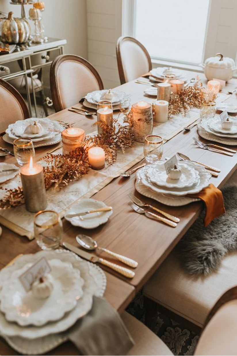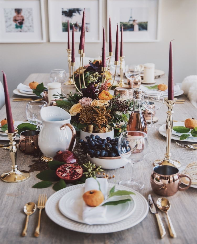 This is one less thing you have to do on the actual day and it can be so fun! Avoid the disposable themed plates and decorate your table with fun fall leaves, candles and more for that perfect ‘Instagrammable’ look. If you’re not sure what to look for or just haven’t hosted before, check out some of these items below (they’re all under $50 a piece).