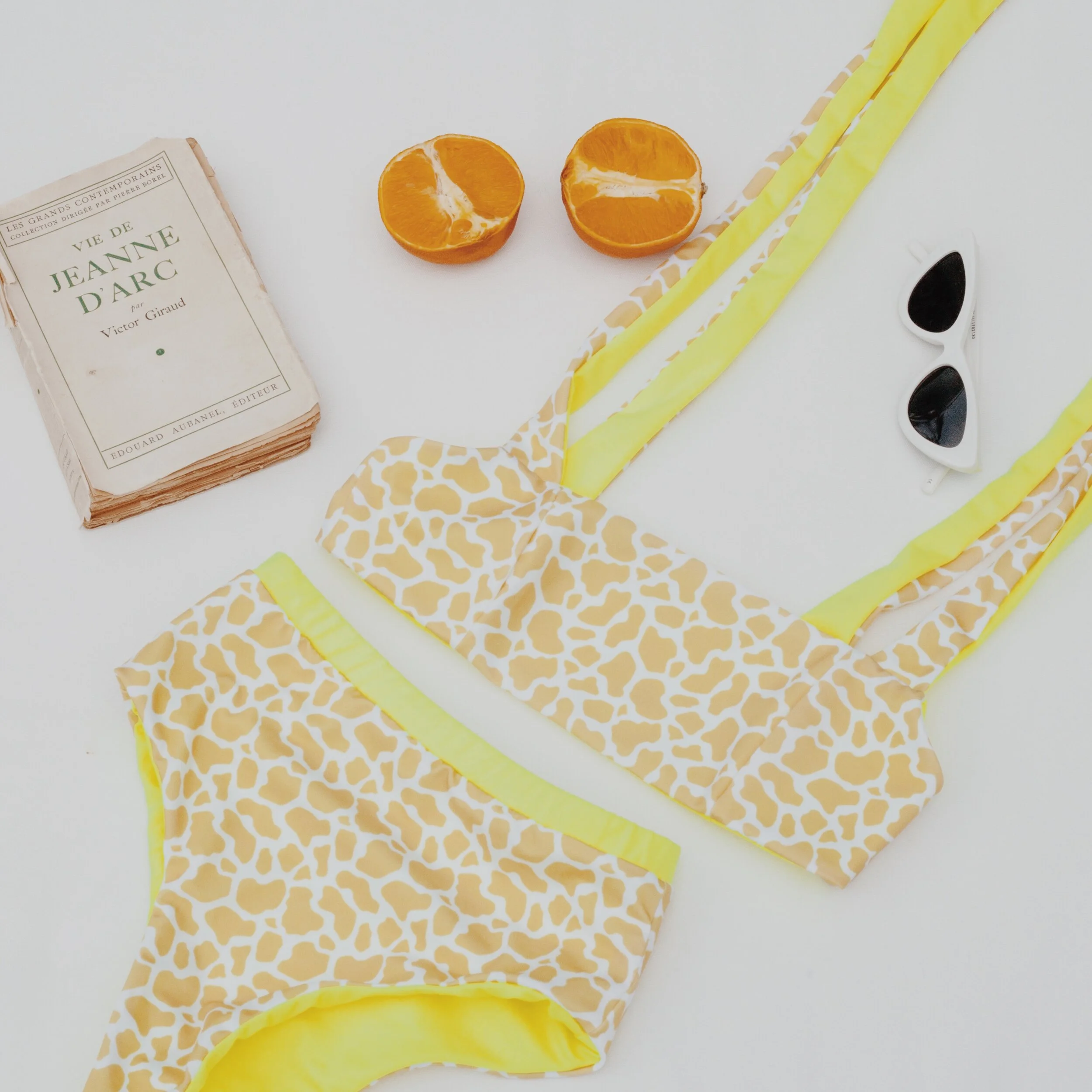 Oof this is a tough one! I love all of our current and upcoming designs for their own purposes, but I’d have to say the Laguna Top and Lido Bottom in our ‘Radiant Giraffe’ color really surprised me! The neon yellow solid side and the yellow giraffe print definitely were the most out-there and I wasn’t sure how people would react, but that colorway ended up being easily one of our most popular. This sort of got me comfortable with taking chances and sticking with my instinct when it comes to future designs. In the new collection, we’ll be bringing back the Laguna Top and Lido Bottom as it was highly requested but will be introducing the pieces in different colors and patterns.