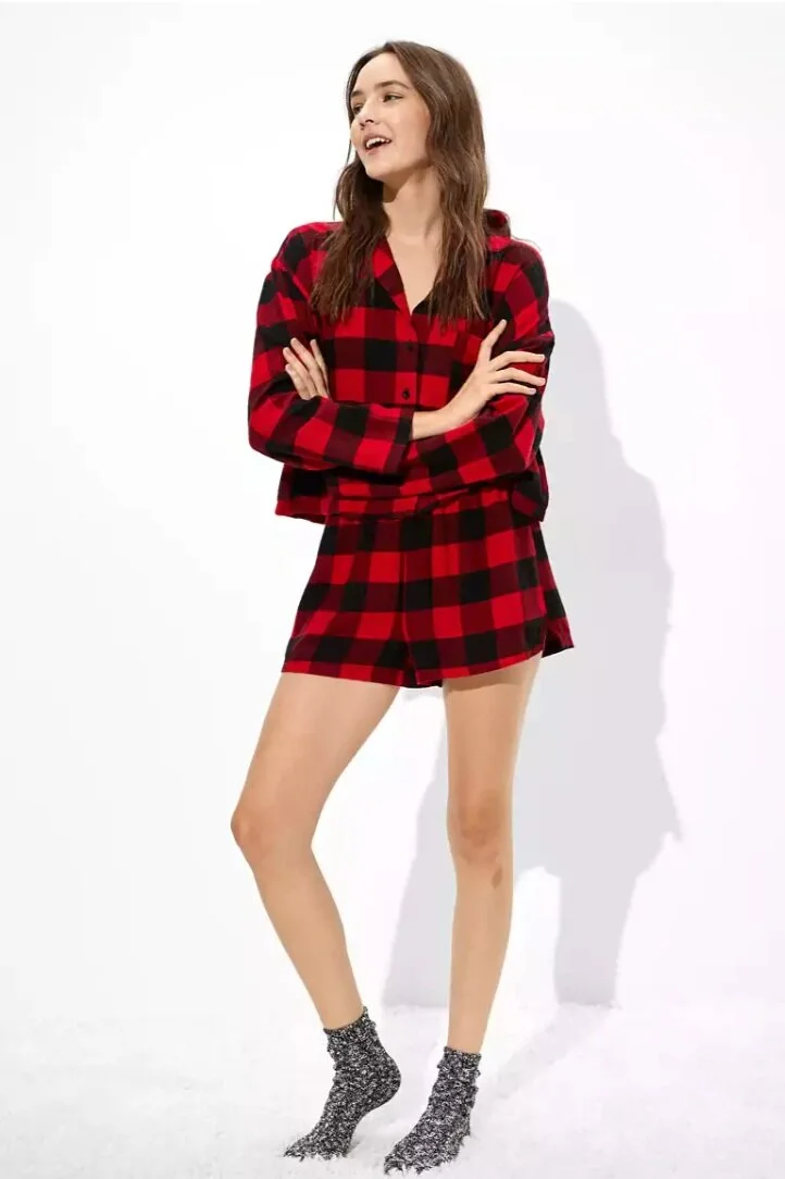 Shop the look: AEO Plaid Flannel Short PJ Set