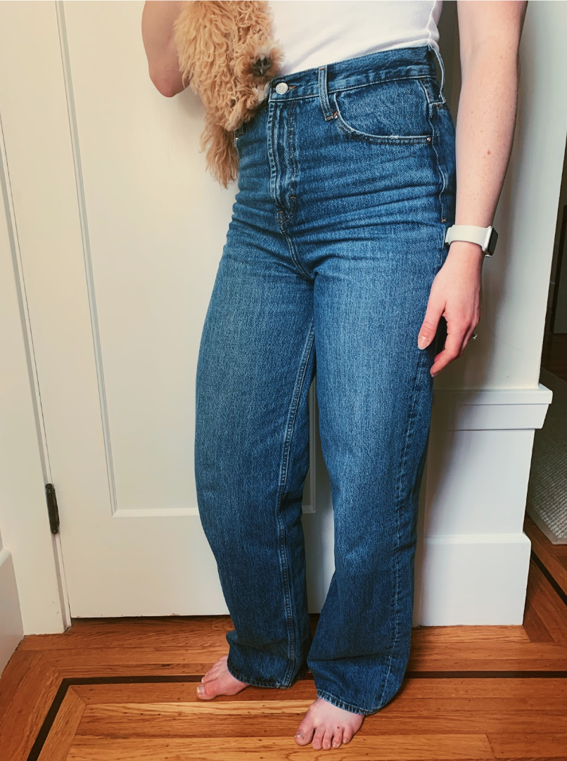 My pair of high-waisted Zara denim that are comfortable and have a dark wash.