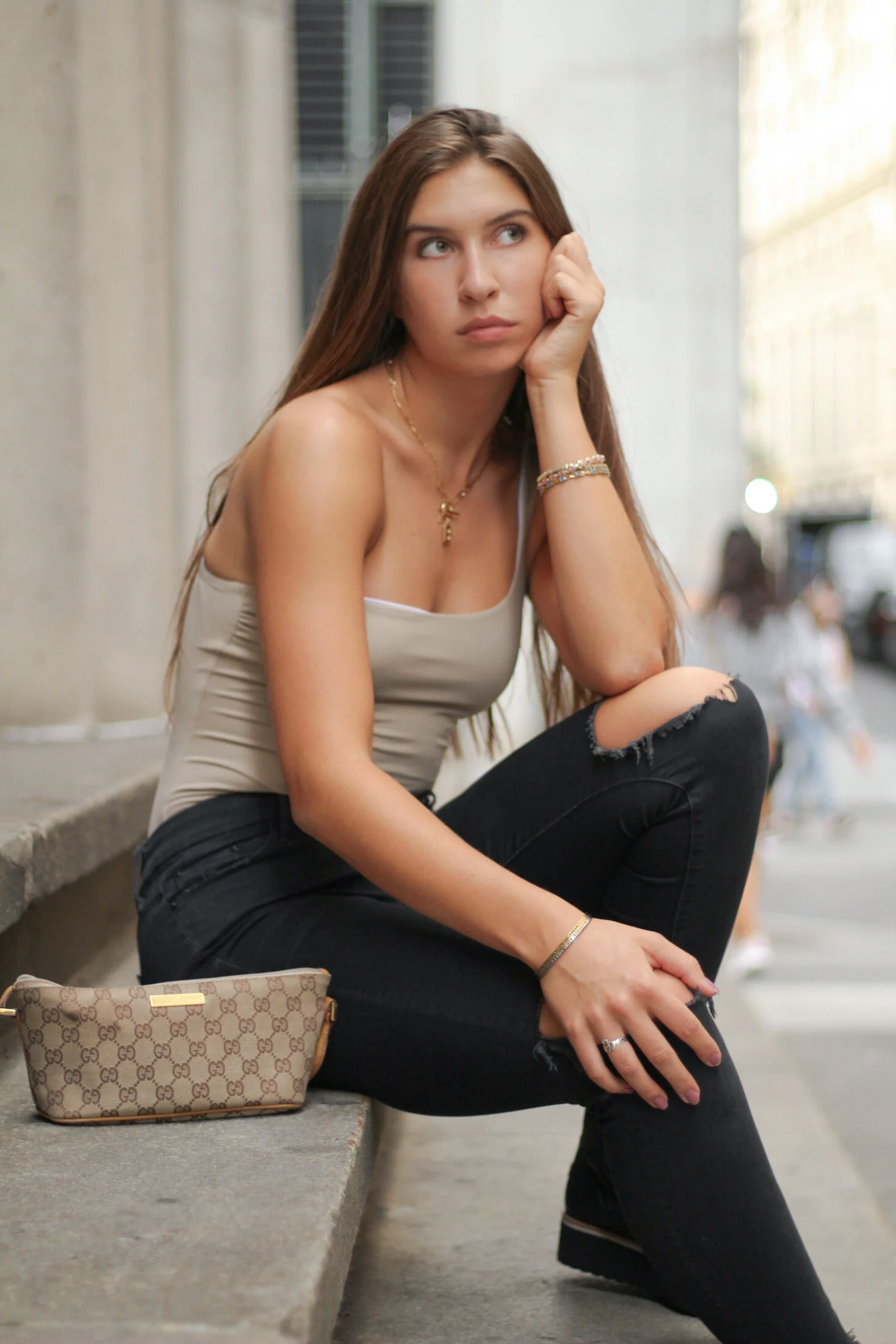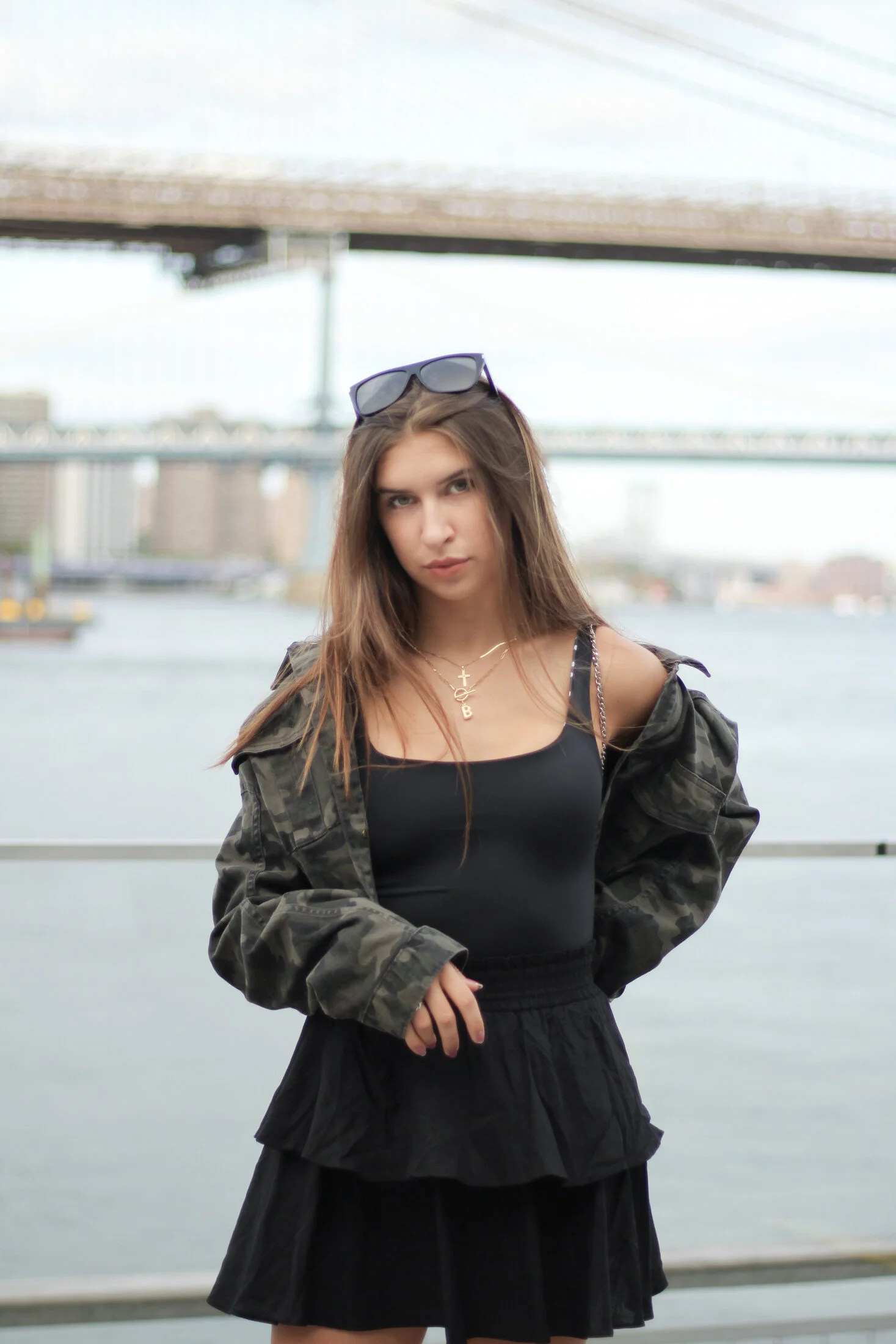Yes, you can wear swimsuits every single month of the year. In fact, we highly recommend it. As stated by Kathleen, “in this new line, the pieces that are not reversible are designed in a way that they will be multi-purpose as wear. There are pieces that double as bodysuits and tops that can be worn as bralettes, giving each piece additional value and purpose.” So, we took the streets of the Financial District in New York City to style Tiller’s three incredibly versatile and high-quality one pieces for colder weather. Not only are these suits extremely comfortable and easy to throw on with a pair of jeans and a jacket, they are chic and sustainable. What more is there to love? Whether you’re enjoying a casual day outside, getting drinks with friends or grabbing dinner at your favorite restaurant, these swimsuits-turned-bodysuits are the essential pieces you need in your wardrobe this fall… and every season after that!